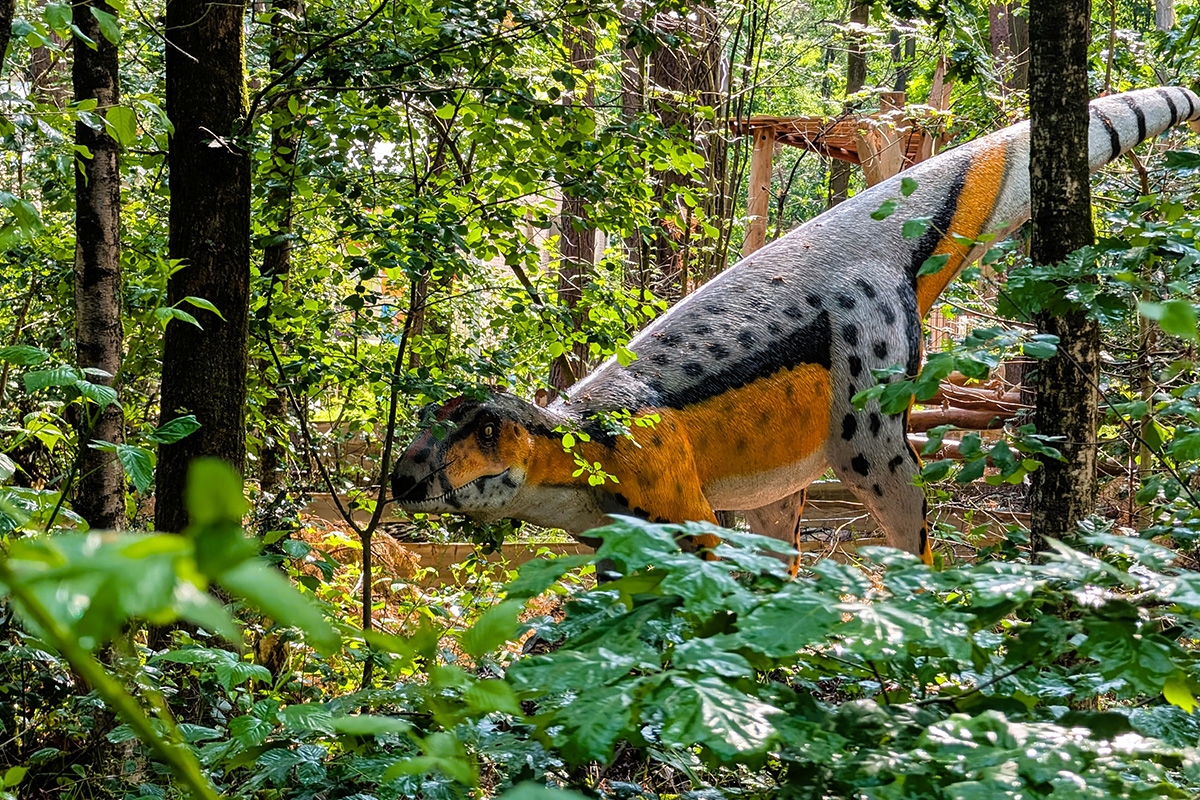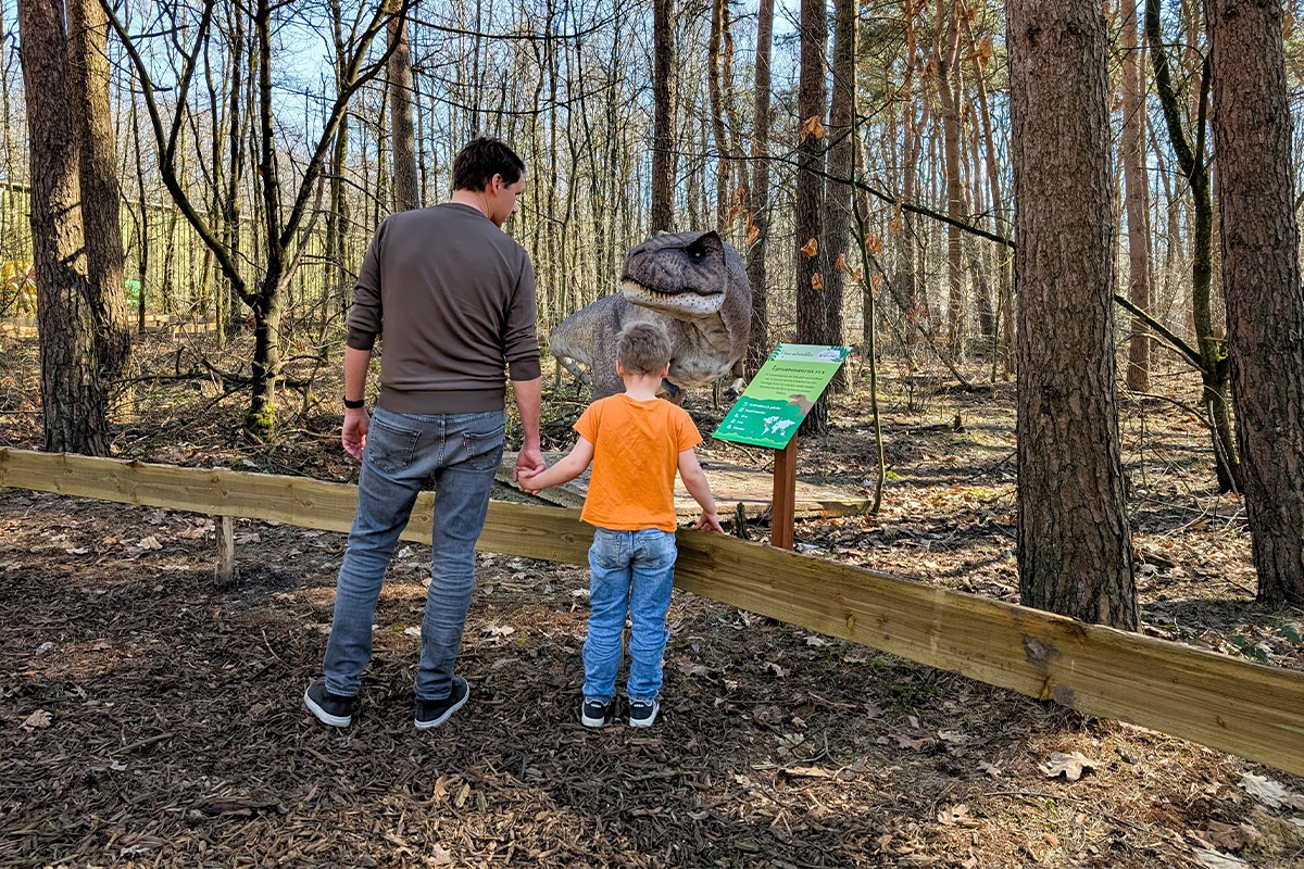 - Sta oog in oog met een levensgrote T-Rex in het Dinobos